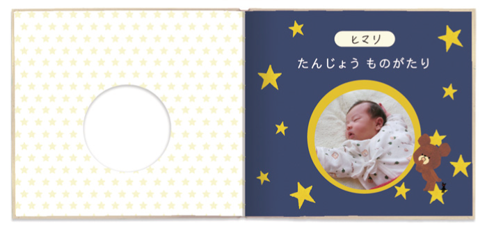 誕生からバースディまでのお写真が入るおはなし付きのアルバムです。